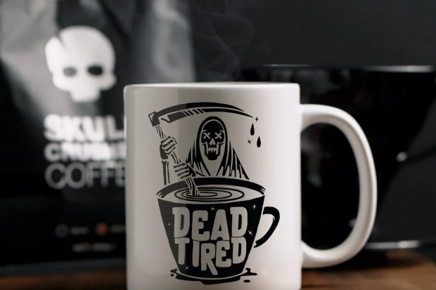 Skull Crusher mugs are instantly recognisable with their edgy depictions of ways to kill tiredness.